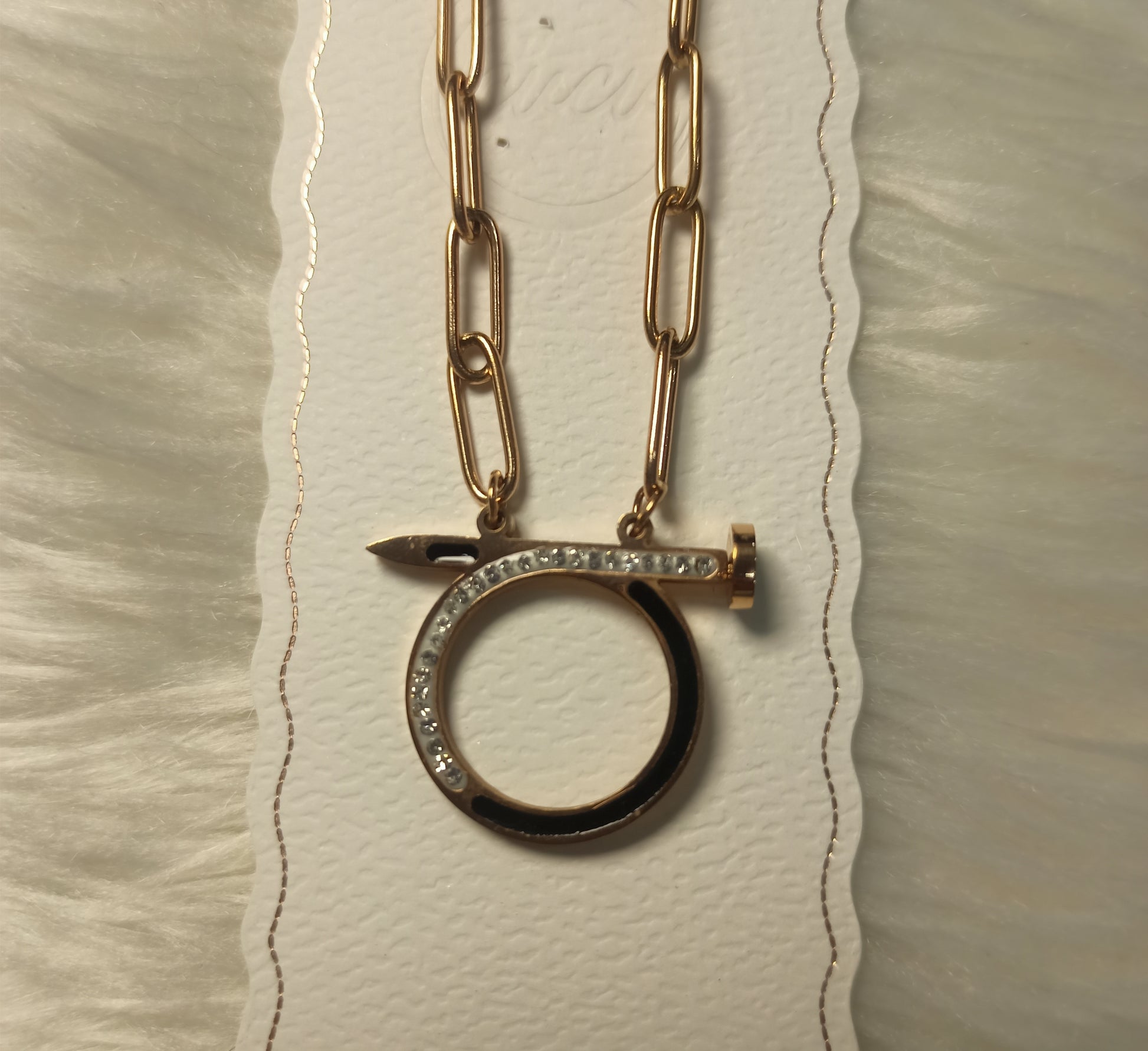 Gold nail design studded with stones. Simple durable desig. Perfect for everyday wear or special moments.